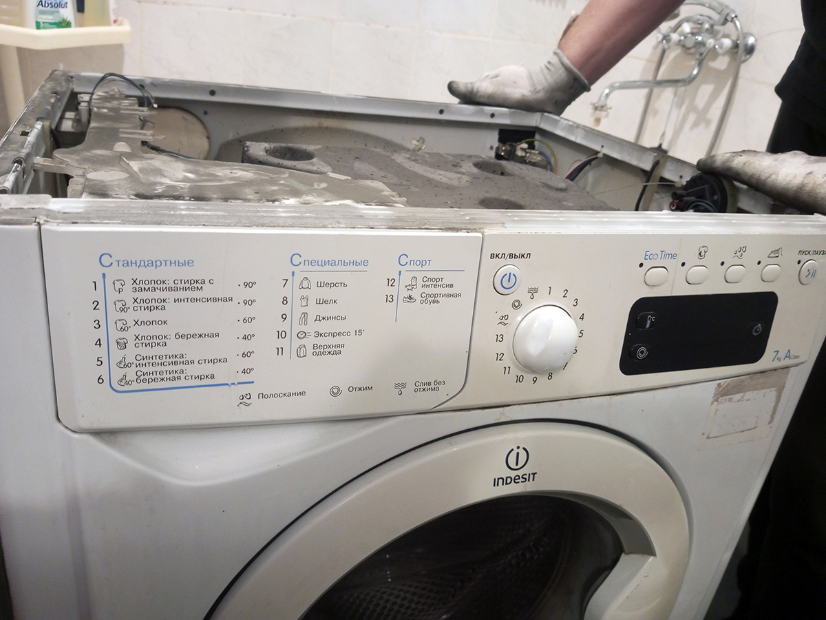 Мастер произвел диагностику, снял пластиковую панель и первым делом проверил состояние впускных клапанов, проблемы с которыми являются частой причиной неполадок с подачей воды. Все в порядке. Не было обнаружено и других неисправностей.